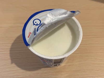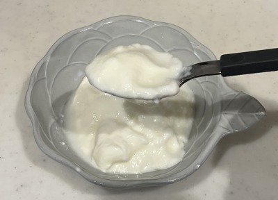 見た目は普通のヨーグルトです。ちょっとだけ食べてみましたが、ほんのり甘くMI-2乳酸菌独特の味のようなものは感じられませんでした。